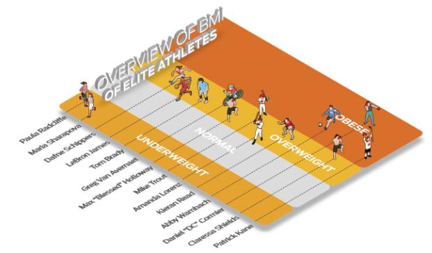 身体质量指数(BMI)通常被用来对健康风险进行排名,但也可以作为体重与身高的一个指标。